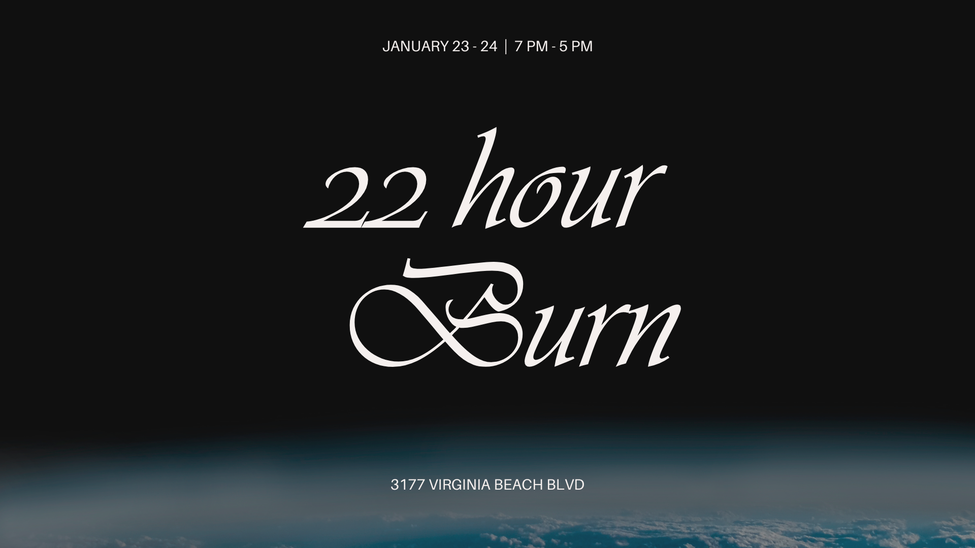 In partnership with our 21 Day Fast, we are hosting a 22 Hour BURN! This is 22 hours of nonstop worship & prayer and all are invited!