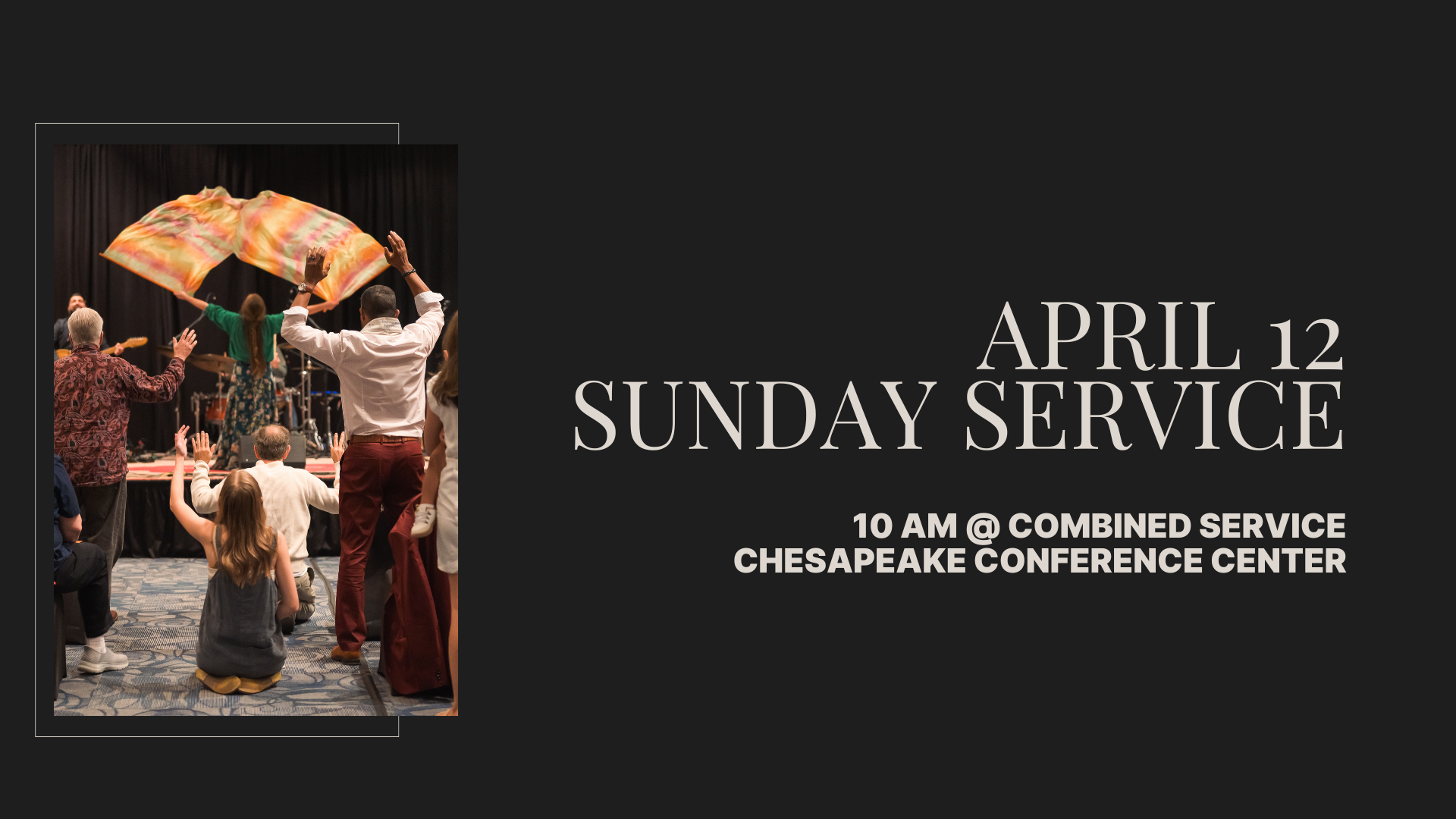 Join us again on Sunday, April 12 for another combined service at 10 AM at the Chesapeake Conference Center in the Greenbrier area. There’s plenty of room, so invite a friend, neighbor, or two!